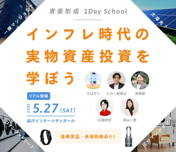 イベント名 :資産形成 1Day School 〜インフレ時代の実物資産投資を学ぼう〜