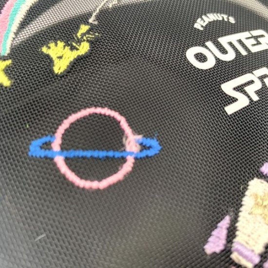よく見ると流れ星のように飛んでいく、ウッドストックもいるんです♪可愛いですよね♪メッシュ素材だからなかが透けています。