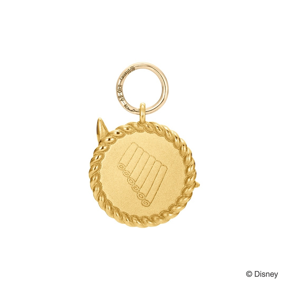 「ピーター・パン」を象徴する帽子と笛を、コインタイプのチャームの裏表に。帽子は羽が飛び出すような立体的な作りに、「ピーター・パン」の躍動感や自由さを感じられるデザイン。ロープのような縁取りで、物語の世界観を表現しています。
