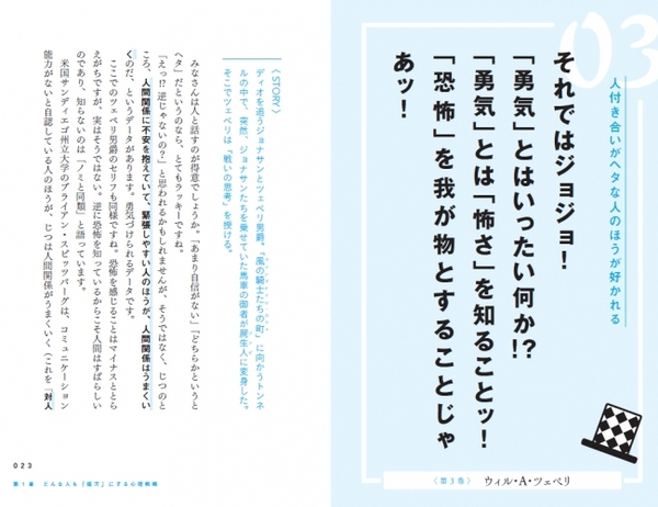 それは、歴代のジョジョが、意識せずに「相手の心を操作」しているから。圧倒的に弱くても、勝つ見込みがなさそうでも、「心理戦略」を使うことで、優位な立場に逆転できているのです。ジョジョの「心理戦略」を学べば、