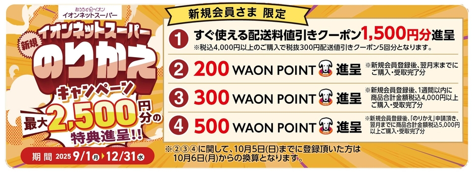 ※新規会員登録後、「のりかえ」申請いただき、翌月までに商品合計金額税込5,000円以上ご購入・受取完了分