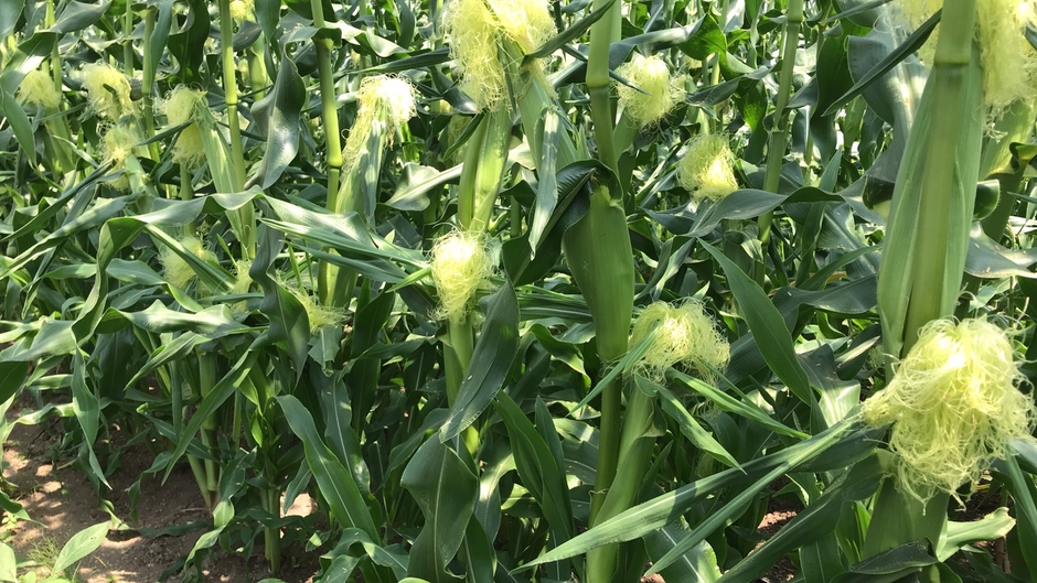 ヤングコーンやとうきびのなっている様子、畑の雄大さ(下の圃場だけで1.5ha/3万本)など見てもらいながら、