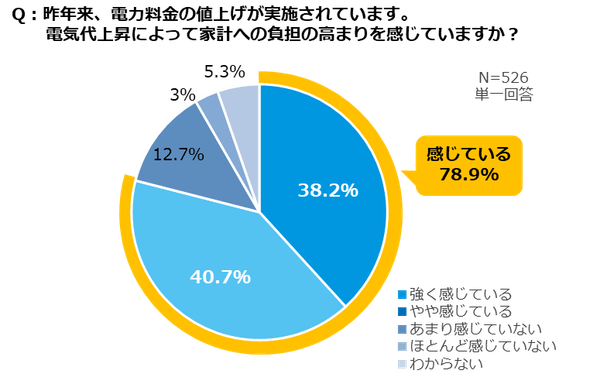 今年の夏、電力需給ひっ迫の恐れがあることを約7割の人が認識! 値上げが続く電気代に、約8割の人が家計への負担の高まりを感じている