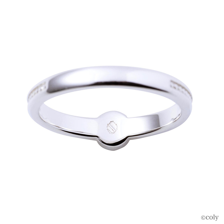 コスチュームのモチーフをリングに取り込んだ甲丸タイプのデザインに、イメージカラーストーンをセット。