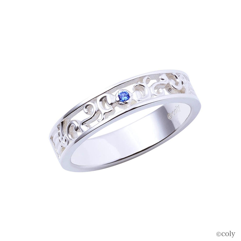 コスチュームの模様をリングに取り込んだ透かしタイプのデザインに、イメージカラーストーンをセット。