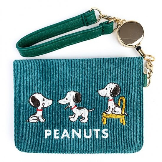 スヌーピーのコーデュロイシリーズのポーチ・お財布・パスケースをご覧いただきました。