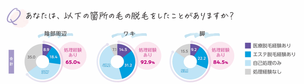 当社が20代~50代の女性を対象に行った調査によると、陰部周辺の脱毛をしたことがある方は65.0%でした。また、脱毛処理経験がある人の方がかゆみや乾燥もしくはくすみ※1の症状が気になる人が多いことが分かりました。陰部周辺やワキ、脚などの脱毛後には、服や下着、生理用品などで肌がこすれ、肌トラブルが発生することがあるため、脱毛後のケアが重要です。「クリニラボ VIOLAOケア」は、脱毛処理、下着の摩擦、汗蒸れなどによるかゆみが気になる時の治療にお使い頂けます。また、「クリニラボ VIOLAOクリア」は、脱毛処理、下着の摩擦などによる乾燥くすみ※1に毎日のケアとしてお使い頂けます。