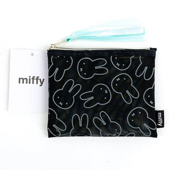 こちらは、メッシュ素材のコンパクトなポーチです。クールなブラック地に、ミッフィーのフェイス総柄がオシャレ♪