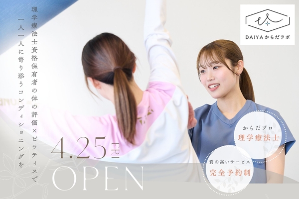 医療用品メーカーのダイヤ工業株式会社(本社:岡山県岡山市 代表取締役:松尾浩紀)は、2025年4月25日(金)より、健康と運動の新たな拠点として、理学療法士の国家資格を持つ専門スタッフによるコンディショニングスタジオをオープンしました。お客さまの体の状態を丁寧に評価・施術し、1人ひとりに合わせたオーダーメイドのピラティスで健康をサポートします。運動初心者から専門的なサポートを求める方まで幅広く対応できるスタジオです。皆さまのご来店を心よりお待ちしております。
