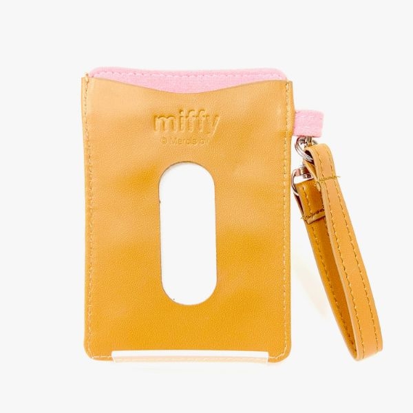パスケース部分もご紹介♪キャメルカラーがオシャレです。ミッフィーのロゴも型押しされていて、リッチ感も♪ミッフィー好きにはぜひ使っていただきたいアイテムです。