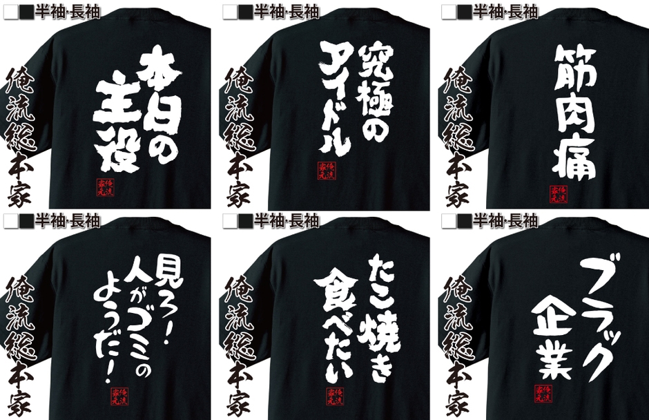俺流総本家の語録Tシャツは、1万種類以上のデザインを取り揃えています。面白いものから感動的なものまで、多彩なデザインがあり、お客様一人ひとりの個性を引き立てる一枚を見つけることができます。カスタマイズ可能なデザインもあり、特別なイベントやギフトにも最適です。