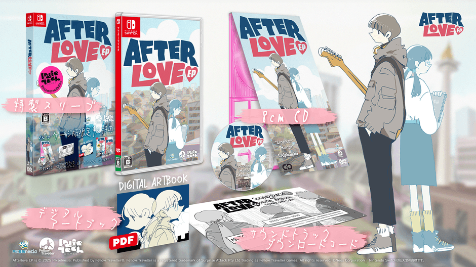 テクミラホールディングスの子会社であるネオス株式会社(本社:東京都千代田区、代表取締役 社長執行役員:池田 昌史、以下「当社」)は、インディーゲームレーベル「IndieTech Games(インディーテックゲームズ)」の第4弾タイトルとして、Fellow Traveller (オーストラリア)との契約の下、【Afterlove EP】(以下「本作」)のNintendo Switch及びPlayStation 5のパッケージ版を、アジア地域(日本、韓国、台湾、香港、東南アジア) で発売する運びとなりました。本日より全国の販売店にて順次予約受付を開始しております。