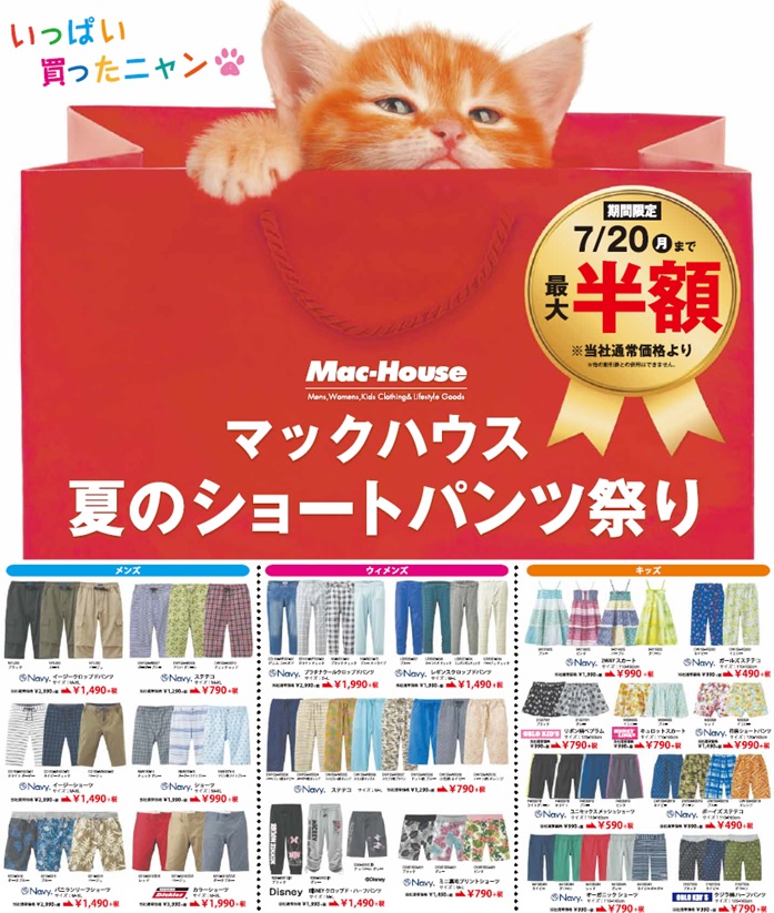 この度、株式会社マックハウス(本社:東京都杉並区/代表取締役社長:白土 孝)は、「マックハウス 夏のショートパンツ祭り!」と題し、夏の必須アイテムであるショートパンツの特別セールを、期間限定にて開催いたします。