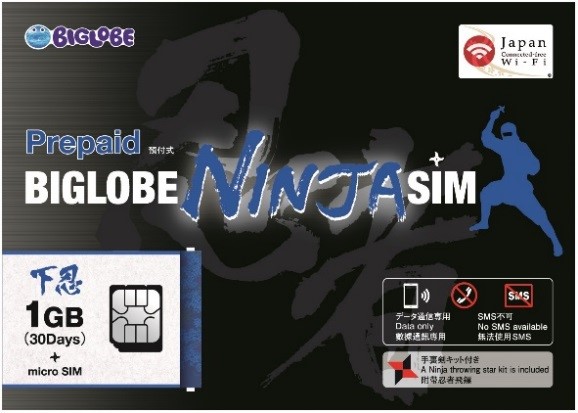 「BIGLOBE NINJA SIM」は、訪日外国人が自国で利用しているスマートフォンやタブレットなどの端末(注1)にそのまま挿入して使用可能なプリペイド型データ通信専用SIMカードで、国際ローミングよりも安価にモバイルインターネットを利用できます。
