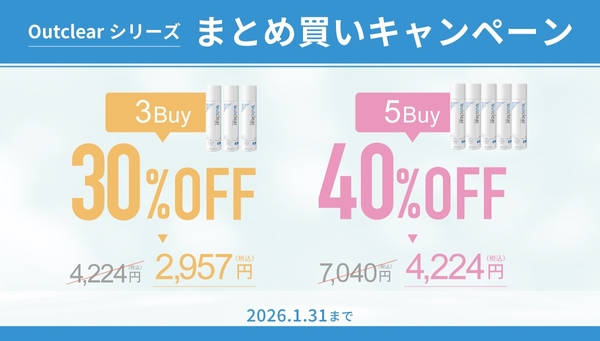 本キャンペーンでは、対象商品の価格改定前にお求めいただける最後の機会として、アウトクリアシリーズを特別価格にてご提供いたします。