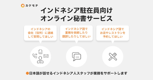 “インドネシア駐在員向け”オンライン秘書サービスをカケモチ(株)がリリース