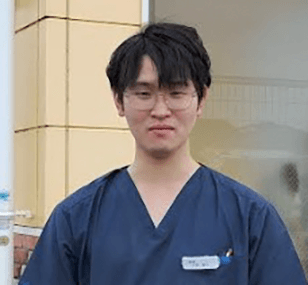 一方、現役合格の松岡優也さん=写真㊦=は地元の県立今治西高校出身。「今治キャンパスの学生室という勉強スペースに研究生の先輩方がいて、分からないところを聞いたり、暗記のポイントや試験情報を教えてもらったり。勉強方法もアドバイスしてもらいました。非常にありがたかったです」と松岡さん。現在、高松市内の動物病院に約10人の獣医師とともに勤務。「将来は皮膚の状態を見て病気の診断ができるような獣医師をめざしたい」と目を輝かせています。