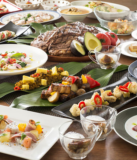 フォアグラ、黒毛和牛、北京ダックをはじめ、この夏注目の「フルーツトマトのかき氷&稲庭うどん」、泡(エスプーマ)の「カルピスソーダ」など、ご家族でもお仲間での楽しめる充実の50種類以上のバイキングメニュー&ソフトドリンクバー