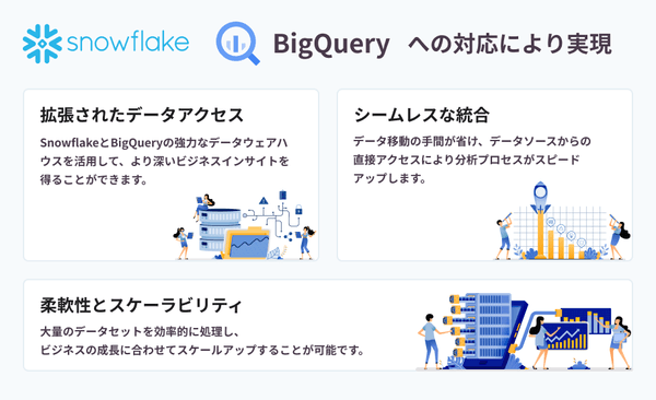 Snowflake、BigQueryの対応により高度なデータ分析とAI構築を行うことが可能