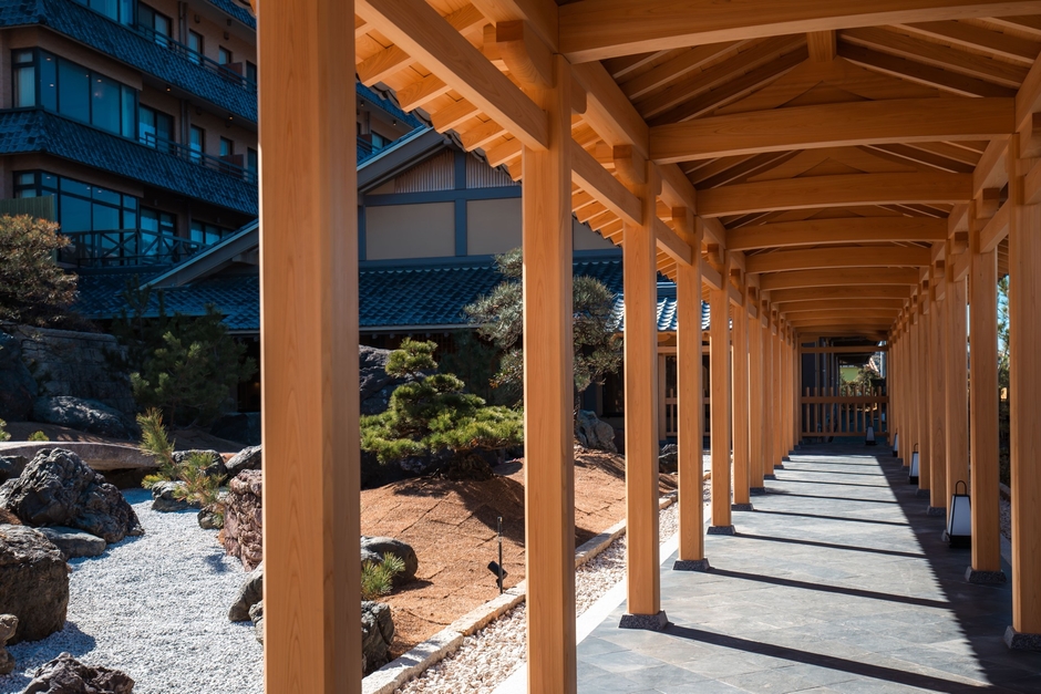伝統技術への敬意と、未来への視点を併せ持つ「鵤工舎」の棟梁である小川三夫氏が設計。宮大工ならではの高度な技術を用いて、建物や日本庭園の雰囲気に合わせ、細部の納まりや木の剪定、加工精度にこだわりが満載。宿泊施設という枠組みを越え、何百年後にも誇れる品質と佇まいを備えた木造建築。