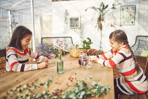 温室「グリーンハウス」には、農家サンタのお部屋をイメージしたフォトスポットが登場します。農家サンタの洋服や帽子、農作業に使った道具などが飾られ、サンタが暮らす雰囲気を感じながら撮影を楽しむことができます。また、「農家の手仕事~ヒンメリづくり~」を開催します。温かいハーブティーを片手に、クリスマスツリーの装飾にも用いられるヒンメリを作る体験を楽しむことができます。