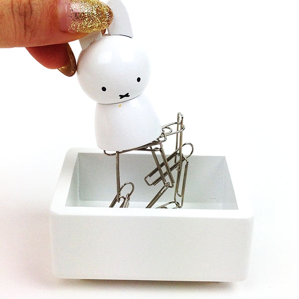 まずは、クリップホルダーのご紹介です。ケースの中に、マグネット仕様のミッフィーが待機中。クリップの保管場所としてお使いいただけます。サイズは60×70×50mmのコンパクトサイズなので、邪魔になりません。