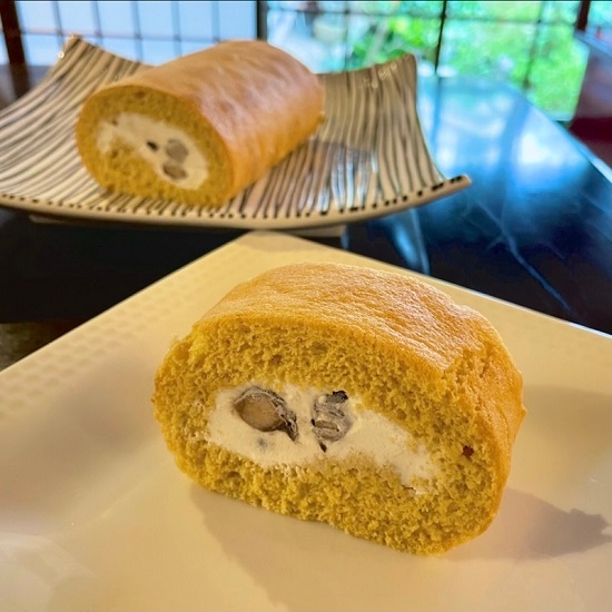 オリジナルの丹波篠山産コシヒカリ100%の米粉で作ったふんわりロールケーキです。無添加にこだわり身体に良い食材と本場の黒豆煮をふんだんに使用した当店だけの味わいです。