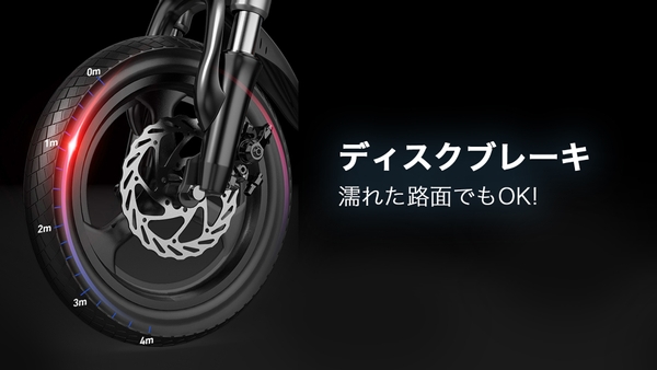 前後輪ディスクブレーキやパンクしにくいタイヤ等、細かいところにも工夫を施しています。