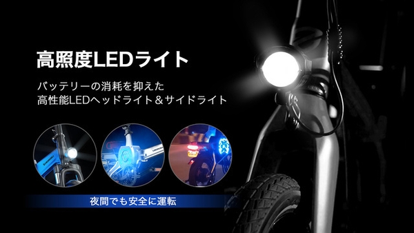 高照度のLEDヘッドライトや、安心のサイドライト・ヘッドライトを搭載しています。