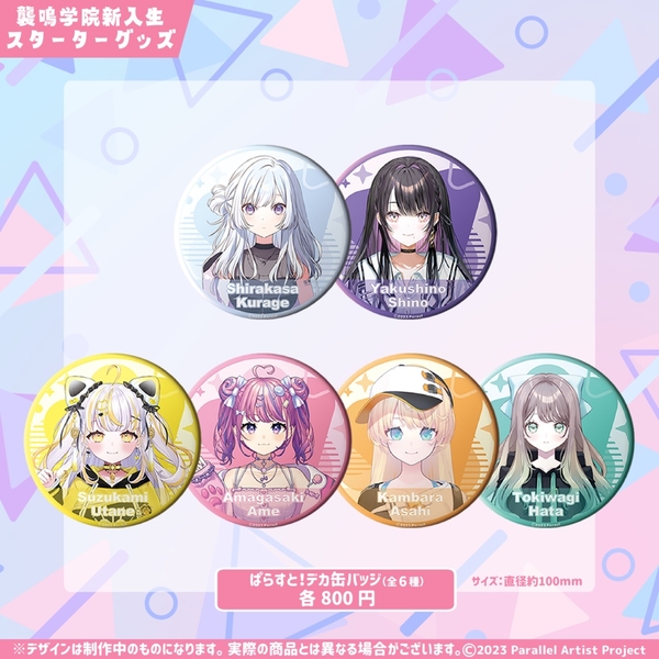 ■襲鳴学院スターターでか缶バッジ 各種800円(税込)