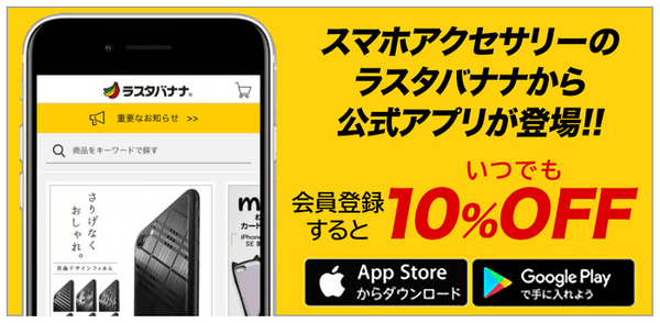 会員登録すると10%OFFで購入できる「ラスタバナナダイレクト」公式アプリをリリースしました。