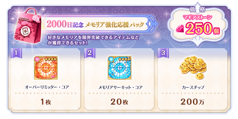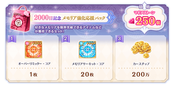 ※「2000日記念 メモリア強化応援パック」のご購入はおひとり様2回までです。