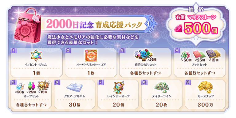 ※「2000日記念 育成応援パック」のご購入はおひとり様1回までです。