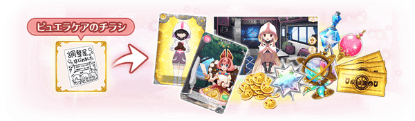 本イベントで獲得した「ピュエラケアのチラシ」は新魔法少女「くろ(CV.城内由茄子)」や限定メモリア「草の根のバレンタイン」限定ホーム背景「バレンタインメッセージ」「ガチャチケット」「バレンタイン交換チケット2023」等の貴重なアイテムとも交換できます。