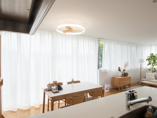 一般的に光量のあるシーリングファンライトは、多灯タイプが多いですが、器具のサイズや重量が大きくなりやすいため、広い空間や高い天井のお部屋に設置される傾向があります。