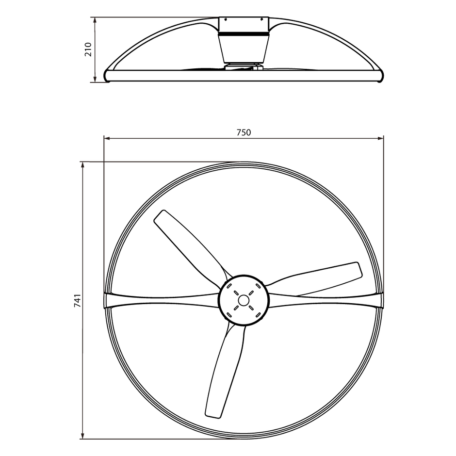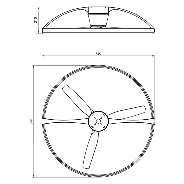 商品全高210mmの超薄型設計によって、天井高の低い日本住宅にも設置しやすいコンパクトなサイズを実現。器具の幅もΦ750mmとリビングやダイニング、寝室、キッチンにも取り付けやすいサイズに仕上がっています。