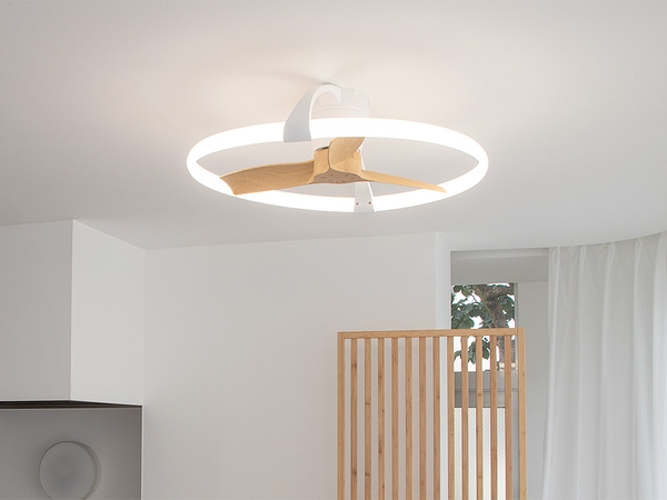 一方でMistral(ミストラル)は、シンプルかつコンパクトなデザインと明るさを両立していることから、シーリングファンライトの設置を諦めていた、または考えてすらいなかった部屋でもご利用いただけます。