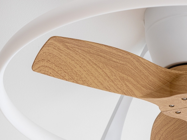 「地中海沿岸から海に向かって吹き下ろす、冷たく乾燥した強い北風」の名前を冠するMistralは、20畳以上の空間をカバーできる大風量(最大風量かつ2.5mの普通天井の場合)、10〜12畳を明るく照らす5200lmの光量という高い機能を備えながらも、全高21㎝という圧迫感のない調和のとれたデザインが特徴のシーリングファンライトです。
