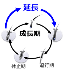 髪は常に成長しているのではなく、一定の寿命があります。成長したあと自然に抜け、再び同じ毛穴から新しい髪が生まれる、この繰り返しをヘアサイクルといいます。ヘアサイクルは「成長期(2~6年)」「退行期(2~3週間)」「休止期(3~4ヶ月)」に分かれ、成長期が長ければ長いほど、髪はその分長く成長し、また太くなります。つまり、髪の成長においては「成長期」が最も重要な役割を果たします。