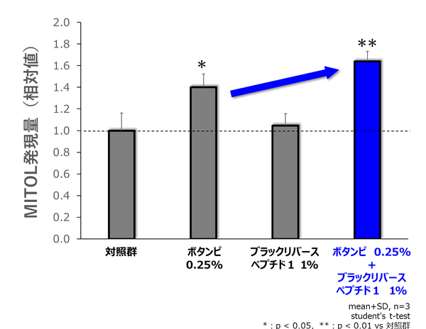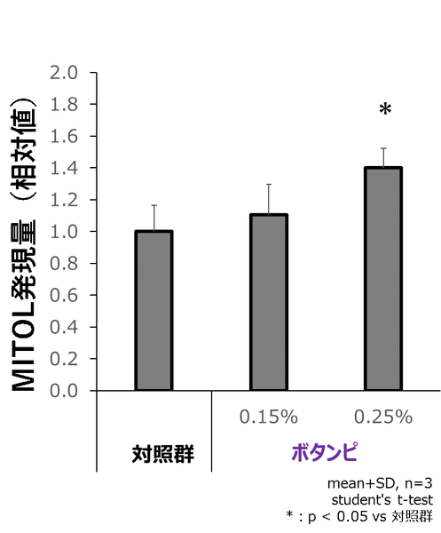 図5.「ボタンピエキス」×「ブラックリバースペプチド1」によるMITOL発現上昇