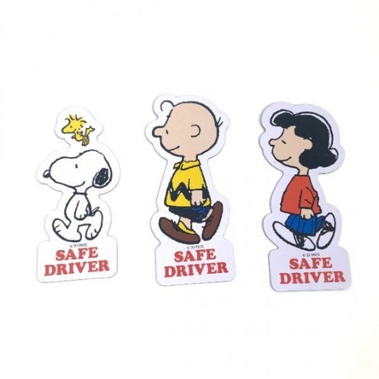 次もマグネットタイプのセーフティサイン。スヌーピー&フレンズが仲良く同じ方向に歩いています♪3個セットだから全部貼ってインパクトある感じにしてもいいし、1個ずつ貼ってもいいし使い方いろいろです♡ダイカットデザインもキャラクターが強調されて可愛い!
