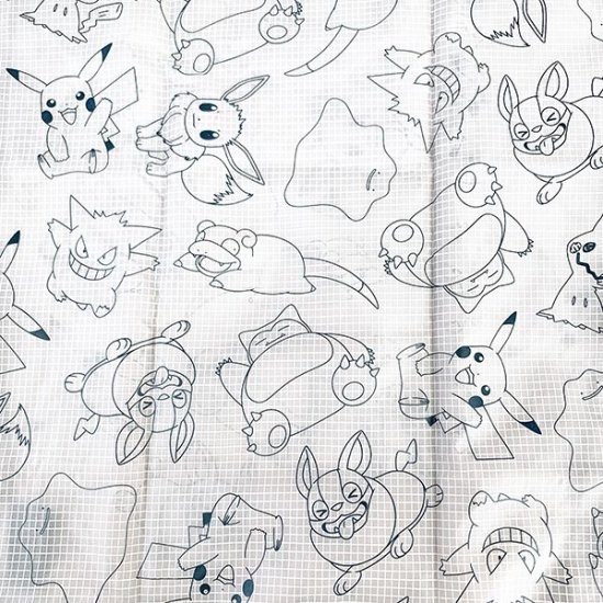 最後は、グレー地にポケモン大集合のデザインです。イーブイやワンパチ、ミミッキュなどの人気ポケモンがあちこちにデザインされていますね~。