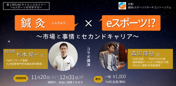 第2回FeRCサイエンスセミナー 【鍼灸 × eスポーツ⁉ ~市場と事情とセカンドキャリア~】