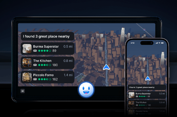 MapGPTは、Mapboxの位置情報とデータを組み合わせた生成AIの活用と柔軟なカスタマイズ性により、自動車メーカーやアプリ開発者は、ナビゲーションだけでなく、道路や交通状況、おすすめの観光スポットなど、あらゆる情報を自然な会話で行うことができるAI音声アシスタントを作成することができます。
