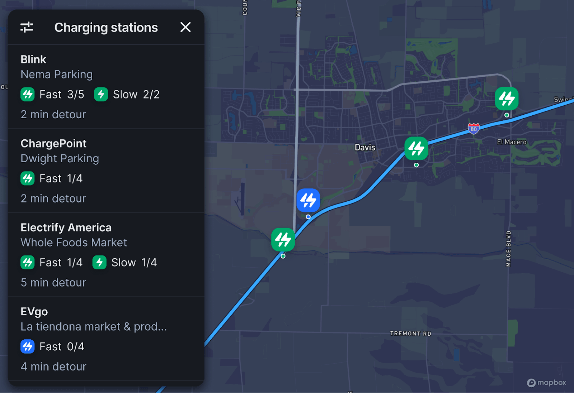 Mapboxが提供する電気自動車(EV)向けソリューションにも新たな機能を追加しており、さらに進化を遂げています。最新の「EV Charge Finder API」は、EV向けのナビゲーション機能に航続距離予測やバッテリー管理、充電ステーション利用時の車内決済機能などが統合されています。