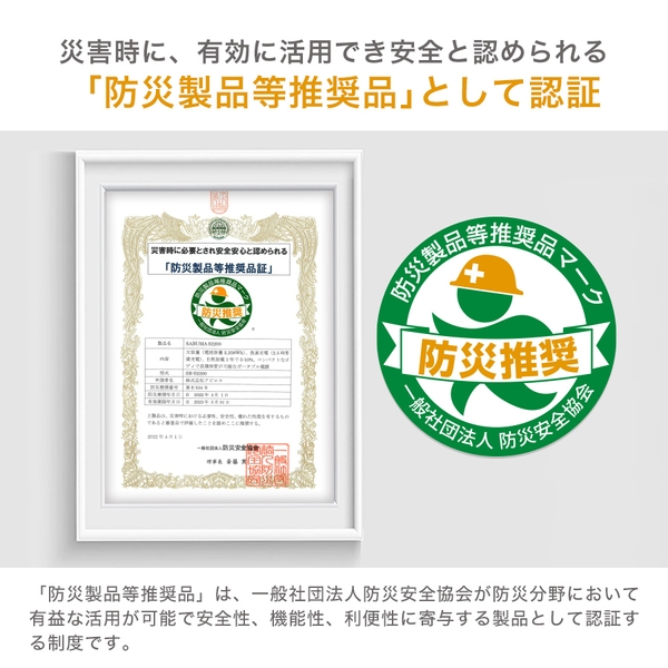 また、一般社団法人 防災安全協会が定める「防災製品等推奨品」として認証されているため、災害時に安全かつ有効に活用することができます。