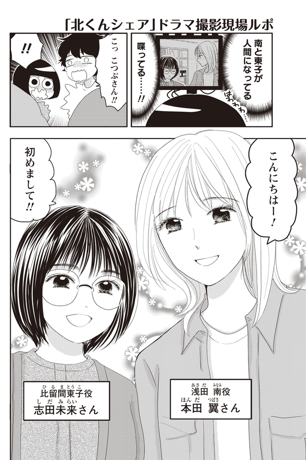 カンテレ・フジテレビ系にて、毎週火曜よる11時より絶賛放送中のTVドラマ『北くんがかわいすぎて手に余るので、3人でシェアすることにしました。』の撮影現場を、原作者の榊こつぶ先生が訪問。主要4キャストとの対面に、榊先生のトキメキも最高潮! 原作ファンもドラマファンも必見な、作者本人によるドキドキレポートです!!