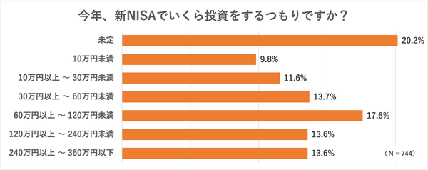 新NISAを「利用している」「今後、利用する予定」と回答した744人に、今年の投資予定額を聞きました。
