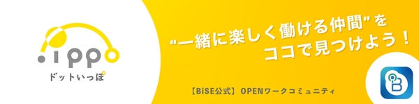 なお、スマホアプリ「BiSE」は、信頼する仲間とクローズドな(メンバーが限定された)環境で質問や相談など、仕事上のコミュニケーションをとることに特化したアプリです。既存の仲間や「.ippo(ドットいっぽ)」で出会った仲間とBiSEで個別にワークコミュニティを作って、一人一人が互いの強みを生かしながら、"好きな人と好きな仕事をする"ためのサービスを提供しています。