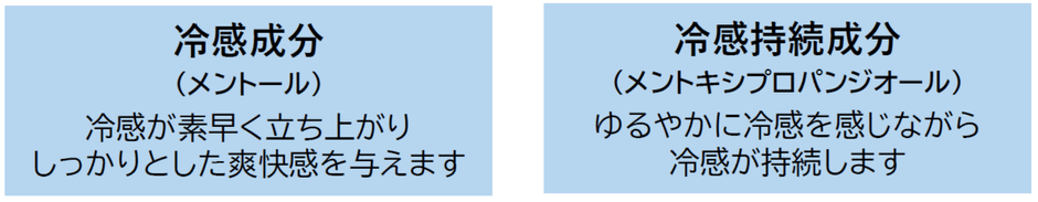 瞬時にひんやりとした冷感を感じ、爽快感が持続します。